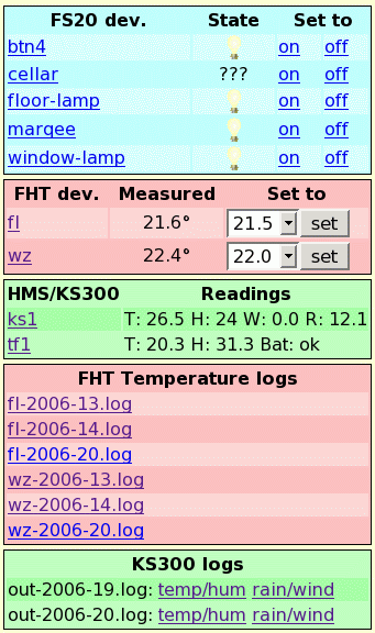 FHEM (GPL'd FS20/HMS/FHT/KS300/WS300 server for linux, formerly known as fhz1000.pl)